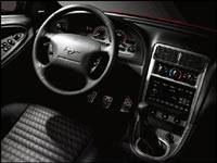 Unlike the GT40 shown at the North American International Auto Show in Detroit earlier this year, the Mach 1 that made its debut in New York doesn't look identical to the original. Rather it's based on the current Mustang GT, a formidable machine on its own. Add a matte-black striped paint scheme, 'shaker' hood scoop, 'comfort-weave' leather seats and gorgeous 5-spoke alloy rims that mimic the original 'Magnum 500' chrome wheels, and the transformation begins. Both C-pillars feature a distinct trim appliqué, further distinguishing the Mach 1 from its GT roots. Also the front air dam has been extended while its rocker-panel moldings appear more prominent. Colors will include Azure Blue, Black, Dark Shadow Gray, Oxford White, Torch Red and Zinc Yellow.