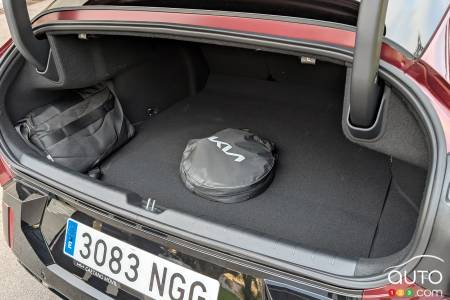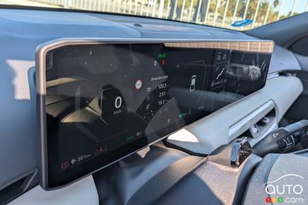 Comfortable, roomy and ergonomically friendly, the EV4 shows again that Kia has largely understood what works with motorists today. The single 30-inch screen display encompasses both the 12.3-inch driver data cluster and the 12.3-inch infotainment system, which provides wireless access to Apple CarPlay and Android Auto, as well as a 5-inch climate display, a sort of popup accessed via a haptic button – a clever way to avoid over-cluttering the display.