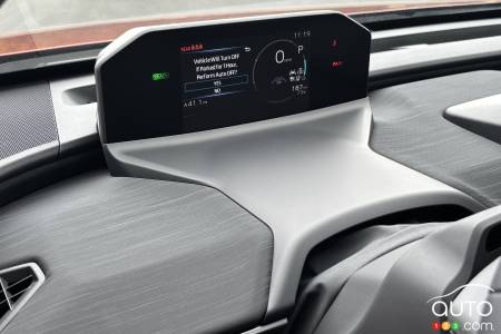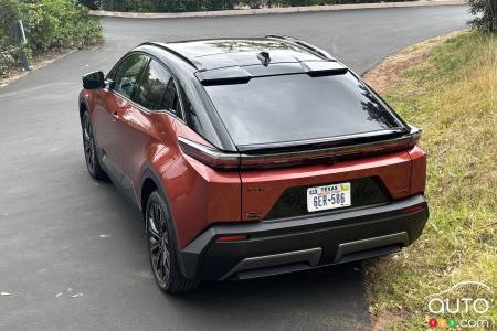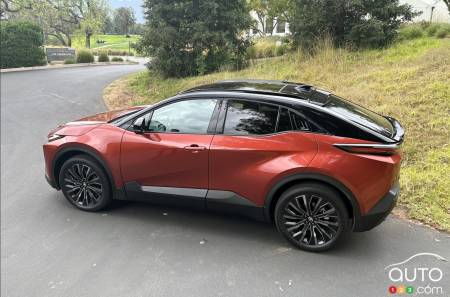 Toyota announces consumption between 14 and 15 kWh/100 km for the FWD version. We were unable to verify these figures as our test vehicle was an AWD model. As always with an EV, real-world range will depend heavily on temperature, driving style, and accessory use. Driving conservatively on a circuit composed mostly of secondary roads, we maintained an average of around 18 kWh/100 km.
