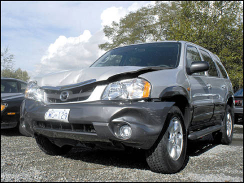As much as I'd like to say I'll go to the furthest extremes to get the story, I hadn't planned on investigating airbag safety and crash test worthiness when I set out to review the 2004 Mazda Tribute. But the fickle hand of fate interceded Monday afternoon - that and a slippery combination of wet roads and bad tires.