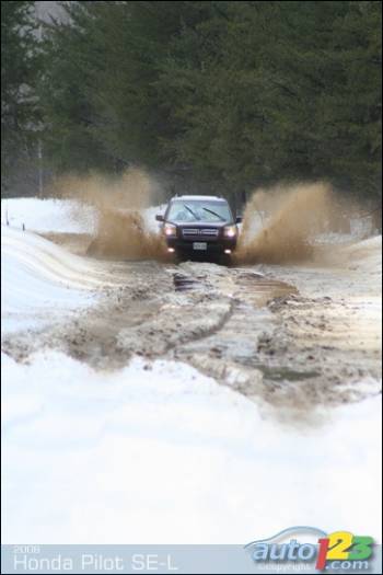 An exceptionally warm early-spring afternoon called for a visit to Nelson Lake- located behind Val Caron, just North of Sudbury, Ontario. The purpose was to meet some friends at a snowmobile trail deep in the woods, and the weapon of choice to get there was Honda's Pilot SE-L. Hitting the trailsMy passenger and I set off, warned by a third friend about the terrible condition of Frenchman Lake Road- the gravel passage from Highway 69 North to our destination. Apparently, it was in rough shape. Heavy flooding from the quick spring thaw was compounded by snow banks which trapped melt-water directly over the roads surface. Some sections would be covered in wet glare ice or deep muddy ruts, too.