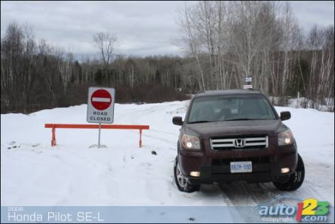 An exceptionally warm early-spring afternoon called for a visit to Nelson Lake- located behind Val Caron, just North of Sudbury, Ontario. The purpose was to meet some friends at a snowmobile trail deep in the woods, and the weapon of choice to get there was Honda's Pilot SE-L. Hitting the trailsMy passenger and I set off, warned by a third friend about the terrible condition of Frenchman Lake Road- the gravel passage from Highway 69 North to our destination. Apparently, it was in rough shape. Heavy flooding from the quick spring thaw was compounded by snow banks which trapped melt-water directly over the roads surface. Some sections would be covered in wet glare ice or deep muddy ruts, too.