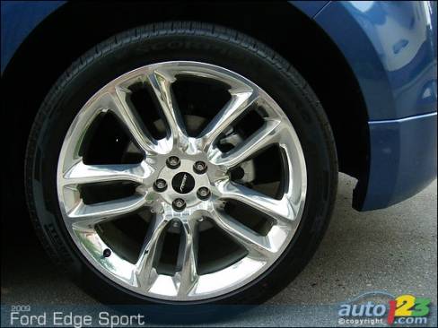They're big, brash and in your face. At 22-inches, the gleaming 10-spoke chrome wheels on the Edge Sport are the largest wheels ever offered on a crossover, and may very well be the largest wheels available on any stock production SUV regardless of manufacturer.