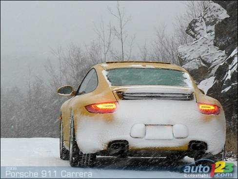Hours of back-road and highway driving in deep snow ensued. In addition to 911'a stable rear-engine handling, a slick stability control system quickly neutralized wheel-spin and slippage before it became a problem- though enough was allowed to maintain forward momentum as required. 911 accelerates and cruises in slippery conditions with relative confidence.