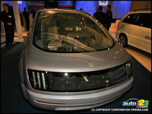Hy-wire is a hydrogen fuel cell combined with by-wire technology. It is the product of a global cooperation of GM designers and engineers in the United States and Germany in association with the SKF Group from Sweden and the Italian design house Stile Bertone. It is GM's second version of this type of technology first introduced with the AUTOnomy concept unveiled at the 2002 North American International Auto how in Detroit.