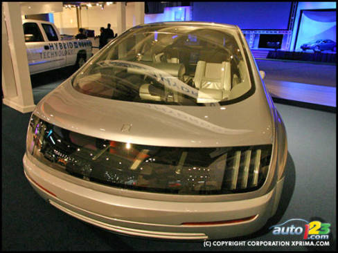Hy-wire is a hydrogen fuel cell combined with by-wire technology. It is the product of a global cooperation of GM designers and engineers in the United States and Germany in association with the SKF Group from Sweden and the Italian design house Stile Bertone. It is GM's second version of this type of technology first introduced with the AUTOnomy concept unveiled at the 2002 North American International Auto how in Detroit.