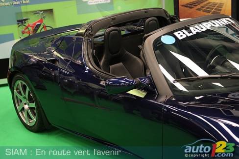 Environment and efficiency are operative words at the 2008 Montreal International Auto Show (MIAS), particularly with the Green Zone and the On Route to a Greener Future segment, which displays all the eco-friendly technologies currently available or under development. The biggest star is undoubtedly the Tesla, a small electric roadster from California which should hit the market in just a few months -- if all goes as planned. Expectations are high: 600 customers have already made a deposit to buy one and about 350 others have put their names on the waiting list.