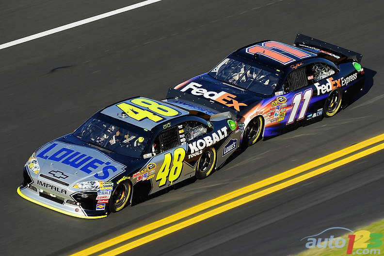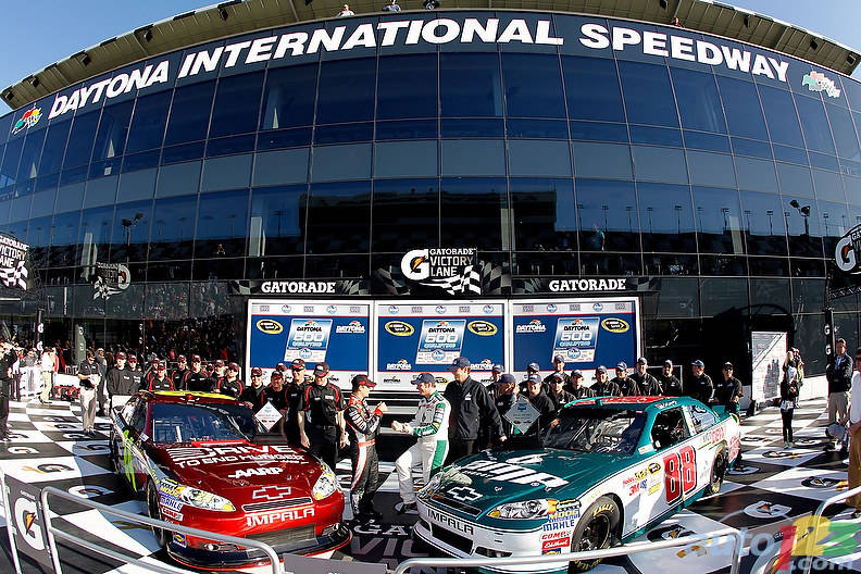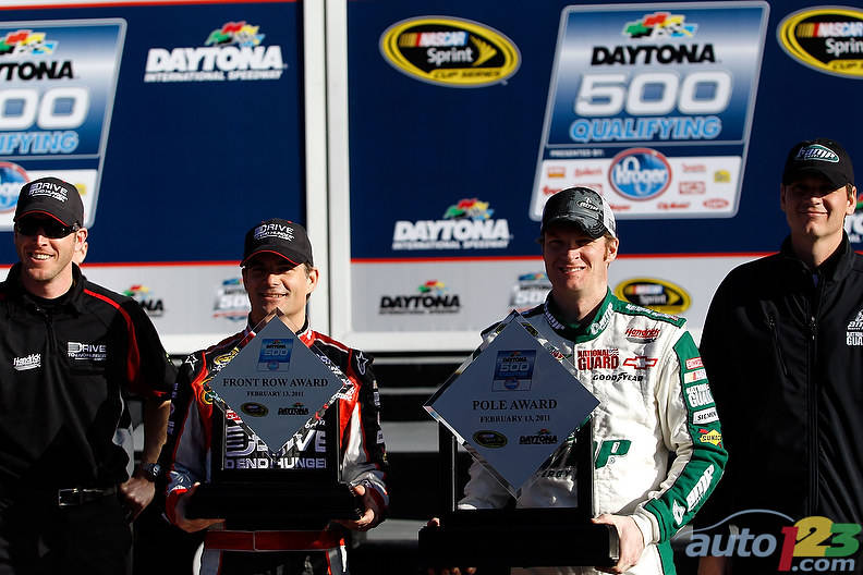In Sunday's qualifying session at Daytona International Speedway, Dale Earnhardt Jr. edged Hendrick Motorsports teammate Jeff Gordon for the top starting spot in next Sunday's season-opening Daytona 500.