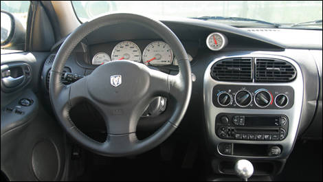 SRT-4 is set off visually with its large rear spoiler, dual-outlet exhaust, lowered stance, and a more aggressive fascia with a hood scoop that directs fresh air into the engine room. Look behind the revised front bumper and you'll notice the intercooler for the turbo as well. It's as mean looking as the cute, googly-eyed Neon ever looked.