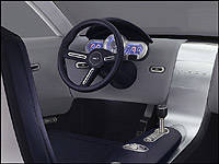 The front passenger in particular is treated to rather luxurious accommodations. At the push of a button, the seat reclines extending an adjustable footrest. Meanwhile, the driver of the Visos is faced with a minimalist navy, gray cockpit featuring milled aluminum accents on the pedals, door pulls, steering wheel and console. Three metal-trimmed 3-D style gauges clearly display all relevant information to the driver, with little fuss.
