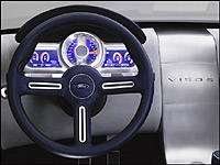 | The driver of the Visos is faced with a minimalist navy, gray cockpit featuring milled aluminum accents on the pedals, door pulls, steering wheel and console. (Photo: Ford Motor Company) |