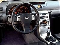 Most of the kudos need to go to Nissan's top-notch engineers, the people behind the FM (front-midship) architecture that makes this car, and the G35 sedan, 350Z coupe and most recent FX35 and FX45 line of SUVs so well grounded at maximum velocity. Like its siblings, the G35 coupe's unibody is structurally tight, offering up an optimal base to attach its aluminum intensive suspension pieces - fully independent multi-link designs front and rear. A viscous limited slip differential comes as part of the M6 package, while the base automatically shifted coupe receives a conventional rear end. Other differences include standard 17-inch rims on the base car, non-Brembo 11.65-inch front and 11.5-inch rear disc brakes and standard interior trim instead of the cool titanium surfaces of the M6 coupe. The 18-inch wheel and tire package is optional on automatic equipped cars, as is the limited slip differential and titanium tint trim. A DVD navigation system with a 6.5-inch monitor is a $3,400 option on both models.