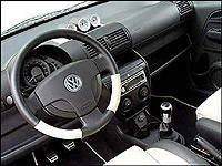 On the other side of functionality, appealing to a much broader crowd is the Fox Pepper. The sportiest of the Fox family, it's powered by a 1.6-liter 16-valve DOHC 4-cylinder that makes an easy-revving 105 horsepower. Volkswagen has also gussied it up in the looks department, adding a special front air dam, rear valance and side skirts to give the car a more aggressive appearance. If that wasn't enough, the tiny car has been fitted with 215/40 R 17 high performance tires on Golf R32 look-a-like wheels.