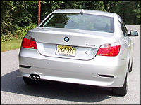 As for styling, I love it. It improves on the 7-Series, especially in the rear where its cleaner decklid design is easier to warm up to. The lower edges of its triangular taillights draw a perfect line to the top edge of the raked C-pillar, a nice touch, while the 5's sculpted headlamp clusters are also wonderfully distinct.