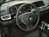 The second half of the 745's gutsy drivetrain is a smooth shifting 6-speed autobox, featuring BMW's Steptronic manual shift mode which is managed through a total of four steering wheel mounted buttons, cast from metal no less. Two buttons are situated on each side of the wheel, one mounted in front for thumb actuation and one residing on the backside for fingertip use. The