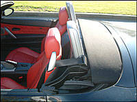 tonneau cover as it is on many rival open-air rides. Although the main portion of the roof forms a quasi-tonneau, which lies flat behind the seats, it lacks a seamless transition between the body and interior of the car. One look at the splendid tonneau design Chrysler incorporated into the Crossfire roadster illustrates exactly what I mean. More impressive than the Chrysler though, is the Z4's spacious, for a convertible, trunk. Yes Tiger, a set of clubs will easily fit in the boot with room left over for the oft-needed Nike raingear. The nicely lined soft-top seals hermetically tight when up too, which is a good thing this time of year as I never found myself sporting blue lips or trembling uncontrollably - well at least not from any chill in the evening air.