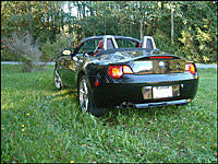 I suppose I should mentioned here that compared to others in this class, wind buffeting in the Z4 is no worse than normal, with or without the optional wind-deflector screen in place between the roll bars. I chose to leave this calming device in the trunk, as the wind in the hair experience is what I think a convertible is all about.