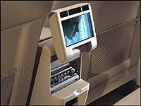 I'm really impressed with the rear seat DVD entertainment system that integrates the audio/visual interface and flip-up monitor into the back of the front center console. While it makes viewing from the 3rd seat difficult, potentially creating family feuds of monumental proportions, it gets the screen off of its usual roof-mounting point that obstructs rearward vision. Wireless headphones are included in the package.