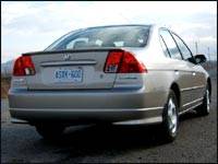 crossed during my time behind the wheel. This dawned on me while I was being passed by 10 and 15 year old cars with broken exhaust manifolds and faulty emission systems. I do not think that pollution weighs heavily enough on people's conscience as of yet to justify the purchase of a $28,500 Civic. Hopefully, this ideology will change much sooner than later.