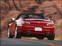 With the '04 update, the engine has been tuned to produce more torque at lower rpm for more energy off the line and a more relaxed drive around town, easing the pain of driving in heavy traffic. Torque has been bumped up 8 lb-ft to 161 lb-ft, and it's generated at 6,500 rpm - 1000 less than in the previous motor. Peak power is also generated at a less frantic 7,800 rpm, down from a sky-high 8,300 rpm. Those who enjoyed the superbike-like 9,000 rpm redline of the old S2000 will be disappointed in the fact that the updated 2.2 liter motor's redline has been clipped to 8,200, mostly because of the longer stroke.