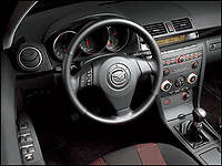 Mazda's made a name for itself in audio systems, sporting some of the best name brands in the business, massive subwoofers, removable faceplates and MP3 technology, before any other manufacturer's engineers even knew how to download a music file. Just the same the new 3 doesn't offer a CD changer standard. You've got to move up to the GS model for that. All the same the stereo is integrated seamlessly into the center stack, controlled by two large knobs or via steering wheel mounted switches - a feature not normally offered in the compact class.