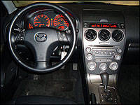 | Mazda's new 6 treats its occupants to an upscale cabin, dominated by a silver, metallic-like center stack. (Photo: Rob Rothwell, Canadian Auto Press) |