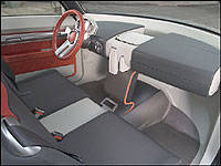 The rest of the "interior" looks trimmed out in high-quality materials, in a minimalist modern gray and blood-orange motif. Its four floating seats are accessible via four clamshell doors, cool looking but not my favorite new trend when needing to get in and out amid crowded parking lots.