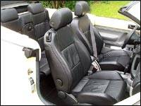 Overall fit and finish is very nice, very Volkswagen. The plastics used are generally of good quality and well put together. Dash ergonomics are functional and well thought out. Only the fuel door and trunk release buttons are difficult to reach when the door is closed because they are at the rear end of the door panel. Ingress and egress are very easy for front passengers. The same can be said for rear occupants thanks to the flip sliding front seats and a tall roofline. Once back there though, space is tight and long trips should be kept to a minimum. Room for the front passengers is plentiful and the sport seats (also discontinued for 2005) are great. They are Recaro style and offer plenty of lumbar and lateral support. With all of the multiple adjustments and a standard tilt and telescopic steering column, finding a comfortable driving position is child's play. The cup-holders located under the centre dash console swing out towards the passenger to permit large drinks to fit.