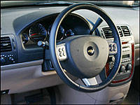 safety should be of minor concern. GM is targeting the highest NCAP scores for frontal, side and offset crash protection as well, so the new van should be up to standard for years to come. Also practical in a less dramatic role is the new standard overhead storage rail system, ideal for clamping on any number of dealer-supplied peripherals to personalize your ride. What might you want to add? How about a DVD player and screen, a first aid kit or any number of 305 mm (12-inch) wide, 229 mm (9-inch) deep bins for stowing sunglasses, MP3 players, cellular phones, personal digital assistants (PDAs), or the like. I like the new flip and fold food trays for first and second row passenger too, a first class treatment that is bound to catch on with rival manufacturers. Its dozen cupholders also make for convenient drink storage.