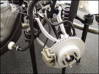 | The 300's suspension, also sourced from Mercedes, is extremely sophisticated, boasting an independent short/long arm (SLA) setup in the front and 5-link independent configuration out back. (Photo: Trevor Hofmann, Canadian Auto Press) |