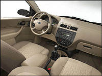 Another noticeable area of improvement is the Focus interior. Addressing quality and design issues, Ford has given the Focus a new dashboard, enhanced color themes and higher quality materials. A simpler symmetrical dashboard has been fitted, which is easier on the eyes than that in the current model. Revisions to the heating, ventilation and stereo controls will make for better navigation as well as a look that's less cluttered. Two-tone beige or gray color schemes added to the seats, fascia and door panels, create a lighter, airier ambiance. On the ZX4 ST, Ford has created a sportier atmosphere with aluminum-look trim on the instrumentation plus leather seating surfaces with perforated suede inserts. Molded cupholders, pockets and cubbyholes have been scattered throughout for easy storage.