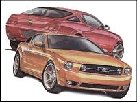 | If Ford were to build its next generation Mustang to look like the two cars pictured in this drawing, there's no doubt they'd have a massive hit on their hands. This artist's rendering appeared in Motor Trend, and is also considered to be a reasonably good interpretation of the future ponycar. |