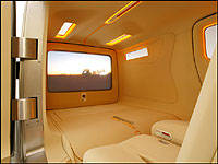 Always considerate of the economy, this concept runs on bio-mass diesel, an 80 percent mix of conventional diesel plus 20 percent biologically sourced (i.e. agricultural byproducts and/or restaurant grease) non-toxic biodegradable diesel fuel. Yes, that also means all your attackers will need to do in order to catch up with you is follow their noses for the smell of fast food.