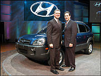 | Hyundai Motor America President and CEO Robert Cosmai (left) and Vice President National Sales, Edward Bradley launching the 2005 Hyundai Tucson at the Chicago Auto Show. (Photo: Hyundai Auto Canada) |