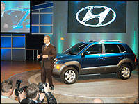 | Hyundai Motor America President and CEO Robert Cosmai unveiled the newest addition to the brand's lineup in North America. The 2005 Hyundai Tucson sport utility vehicle is scheduled to go on sale late this coming summer. (Photo: Hyundai Auto Canada) |