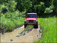 | Steep muddy hills, rocky crags and long swampy puddles provided the opportunity to test the TJ Unlimited's mettle. (Photo: Trevor Hofmann, Canadian Auto Press) |