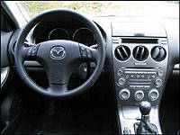 as well as all controls is well placed, and the overall design is cleanly finished while not too busy. It did, however, take a little getting used to the climate control buttons. Although they are clearly outlined, with either a push or a twist to determine functions, I found all the pushing and twisting confusing. I know it sounds odd, but it did take a few tries to get it right. All said, I don't spend a lot of time in cars with automatic climate control, as my editor usually has me covering entry-level product with more basic switchgear. I'm sure more time spent with such systems would make a big difference when becoming acclimatized. It took no time at all to appreciate how generous Mazda was with the 6's interior room. Five adults fit quite comfortably,