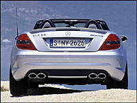 SLK55 AMGs will feature the first V8 to ever be offered in the SLK-Class. With a new class benchmark of 360 horsepower and 375 lb-ft of torque, the lightweight roadster can reportedly achieve sub-5-second runs to 100 km/h. The SLK55 will only be available with M-B's 7-speed automatic, but at least the standard steering wheel mounted buttons will make for a more integrated driver-machine experience.