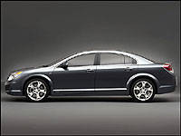 Bold, almond-shaped projector-beam headlamps with jewel-like polycarbonate lenses, plus a ridged hood create a face unlike anything ever seen on a Saturn previously. An angular front valance with three deep intakes and fog lamps enhances the car's nose by adding sporty undertones. The high belt line of the Aura's body traces back to the trunk lid, an ensemble completed by red and white LED tail lamps, lip spoiler and chrome-accented lid.
