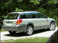 One of the reasons the first two generations of Outbacks scored well with detoxing SUV addicts was the SUV styling bits. With Subaru's "upmarket" intentions for this year's models, they've tried to tone down the mudbogging look. Bye-bye white-letter sidewalls and there's even some monochromatic paint choices on the pallette.