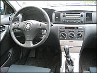 range. Blind spots are minimal and possible to see around if needed. Visibility out the rear window is somewhat obstructed by the trunk, because it's angled a little upwards and sports a humble rear spoiler. Nevertheless I wasn't very troublesome when parallel parking or backing up. Along with the rear spoiler, the Corolla has side skirts and a body-color front grille to add to its sportiness. As I mentioned before, it's a good looking economy sedan. Now, to add to its good looks comes a list of standard