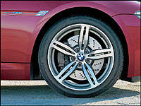 The M6's braking system is truly impressive as well. The dual-piston aluminum caliper and cross-drilled disc setup is capable of hauling the M6 from 100 km/h to a standstill in 36 meters (118 ft.) and from 200 km/h to a halt in a mere 140 meters (460 ft).