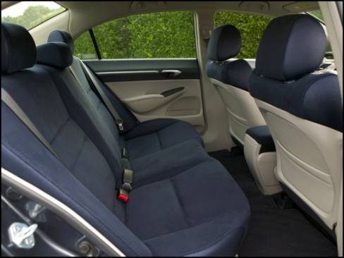Honda hopes to make people see the Civic Hybrid as something more than just an economy car, and as such it features special two-toned cloth seats, digital climate control, and even the option of navigation and satellite radio. In back, the trunk is similarly sized to the regular Civic Sedan, minus 45 litres (1.6 cu ft),