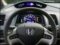 | The IMA gauges are nestled into the lower portion of the Civic's two-tier instrument cluster, next to the oversized tach, while the upper shelf holds the digital speedometer and other vital info systems. (Photo: Honda Canada) |