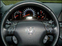front captains' chairs in my leather-laden tester were exquisite. These grand perches provided plenty of well-cushioned support, not to mention back-healing warmth at the flick of a switch. Regrettably though, I found it difficult to dial-in the perfect driving position. Yes, the optional power-adjustable pedals helped accommodate my long pegs but the lack of a telescoping steering wheel left me reaching too far forward when I slid the driver's seat backward to a position ideal for my legs. I don't think my arm-to-leg-length ratio is too far afield the norm, so what gives? The steering column tilts nicely, but Honda, add a telescoping function as well. We apparent "abnormals" will appreciate it.