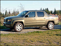 were remarkably supportive and fatigue-free. They provided a high seating position, which enabled excellent forward visibility along with plenty of leg and headroom. Although the Ridgeline's spacious cab may be a shade tighter than the Avalanche's, it doesn't cramp those seated in the rear. Head and legroom there is ample for a vehicle in this segment. And that's really the concept behind the Ridgeline: offer purchasers all of the comfort and hauling forte of a full-size, half-ton, four-wheel drive (4WD) four-door pickup, but in a smaller, more nimble and fuel- efficient package. Based on manufacturer's ratings, the Ridgeline gets more than 20 percent better fuel economy than an Avalanche equipped with a 5.3-litre (325 cu in) V8.