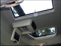 | Jeep's Command-View skylight is a fixed sunroof mounted over the second row of seats, in this case split by a user-friendly DVD-system. (Photo: Trevor Hofmann, Canadian Auto Press) |
