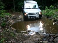 A few puddles had grown large enough to be better defined as ponds, but like all previous terrain the LR3 simply pushed on, hardly breaking a sweat. A variety of wooden bridges, some low to the ground serving as support over bogs and others quite high, traversing ravines. Again, the rain made these more slippery than they would have been otherwise, but a careful, slow pace and making sure the mirrors were positioned to allow a good view of the tires, allowed for safe, steady crossings.