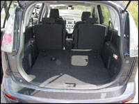 Passengers can arrange their belongings into the hidden storage compartments built into the bottom of each back seat, so no one will have their stuff lying about. The GT model even gets an activity center that folds out from within the second passenger seat that can hold onto your lunch, two drinks, or a small coloring book and some crayons, if your passengers are really young or otherwise like to color, for whatever reason. These middle row seats fold ahead to allow rear passengers reasonably easy access. Space in the back row is tight when the 5 is fully loaded, but remember it isn't a full sized minivan, and the benefits of its compact size far outweigh the downfalls. Once settled in back, there is still ample headroom. Thankfully, the center row seats recline, and slide on rails just like the ones in the front, meaning you can optimize the precious rear leg room depending on everybody's size. Not carrying a full load of passengers? All the rear seats fold into a flat space where you can haul around just about anything. This versatility in the seating, and added storage, makes for a very usable, flexible package.