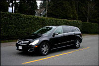 mere 2 mm (0.08 inches) wider and the DaimlerChrysler vans measuring slightly more at 1,997 mm (78.6 inches), still much narrower than the R. Add to this that the minivans feature convenient sliding side doors, which are often powered no less (talk about luxury), and the R's inconvenience is glaringly apparent. It was so bad, actually, that on a number of occasions I had to park closer to the vehicle on my right than I normally would, just so that I could open a side door and let the kids out. Kaden, my five-year old, took to getting in and out via the rear liftgate - do you think I'll be able to get him out of that habit easily? After realizing that by parking over the parking stalls rightmost white line, I was forcing the neighbouring driver to enter his/her vehicle from the passenger side and straddle the centre console, if he/she wanted to leave before I arrived back, I chose to park closer on the left side and do the straddling myself. Believe me, after a day of trying to find parking spots at the other end of the lot (it really needs two to allow reasonable access to its four side doors) the R remained parked in my garage more often than not. In short, living with the R-Class, which (for S-Class owners thinking of moving up from a sedan to a crossover) is 297 mm (11.7 inches) wider than a 2007 S550 and, get this, even spans 105 mm (4.1 inches) more from outside fender to outside fender than the 2,063 mm (81.2 in) wide Hummer H2 and is only 28 mm (1.1 inches) narrower than the overwhelmingly wide Hummer H1 Alpha (yeah, the HUMVEE), is ridiculously inconvenient.